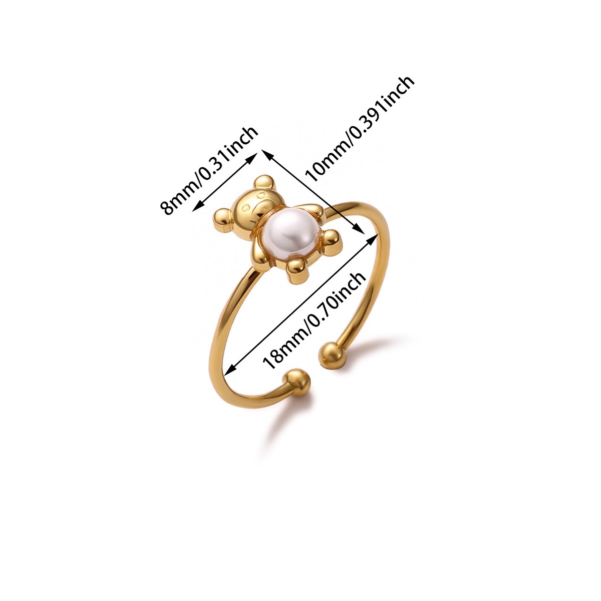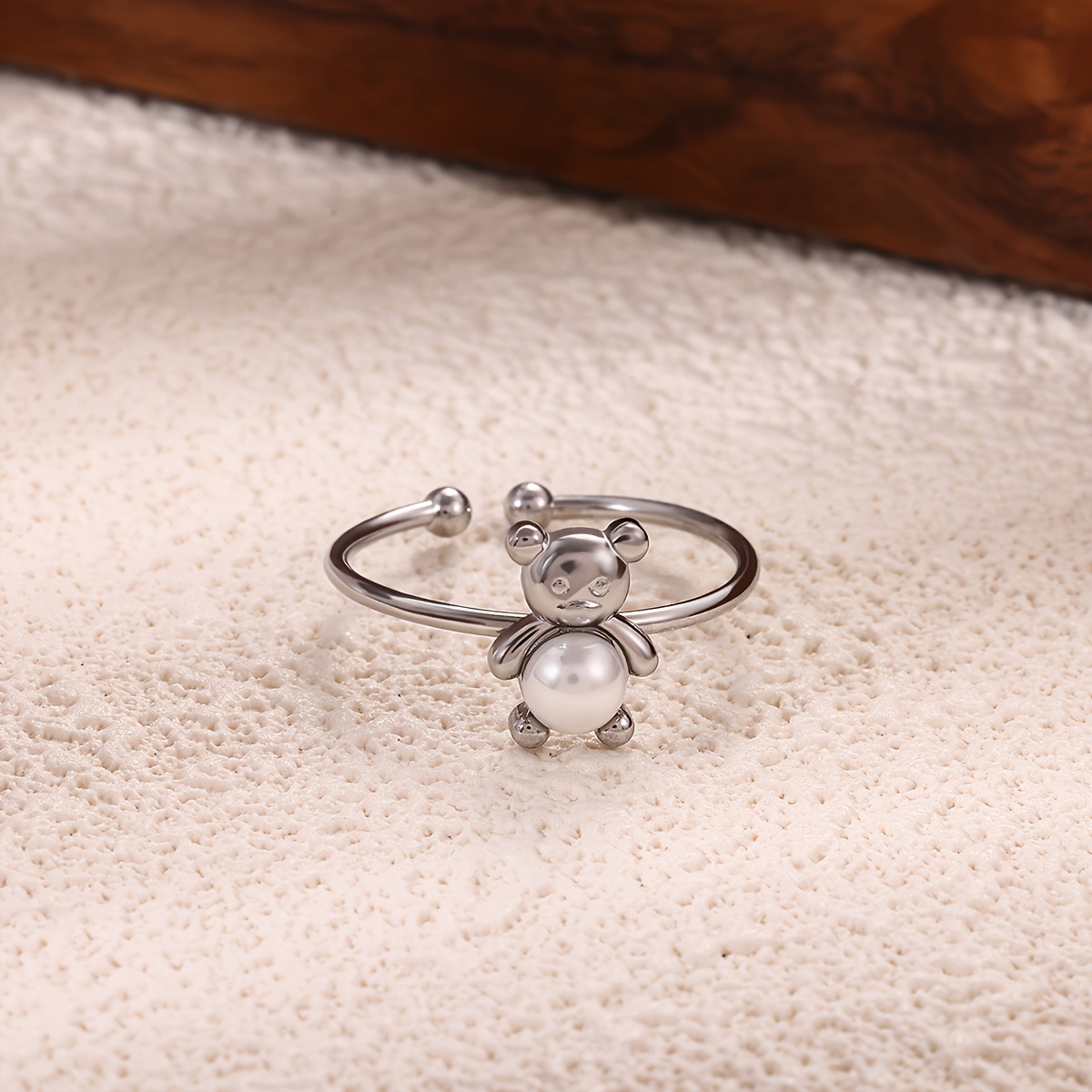 1 Piece Stainless Steel Bear Open Ring, Dainty & Exquisite Fashion Jewelry, Cute Style Accessory, Perfect For Daily Matching & Bestie Gifting