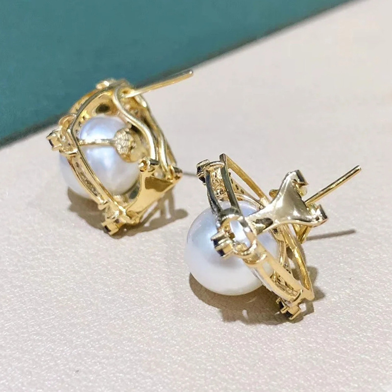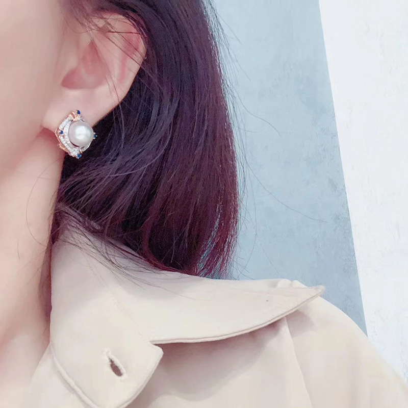 Elegant Two-tone Faux Pearl Stud Earrings With A Geometric Diamond Shape