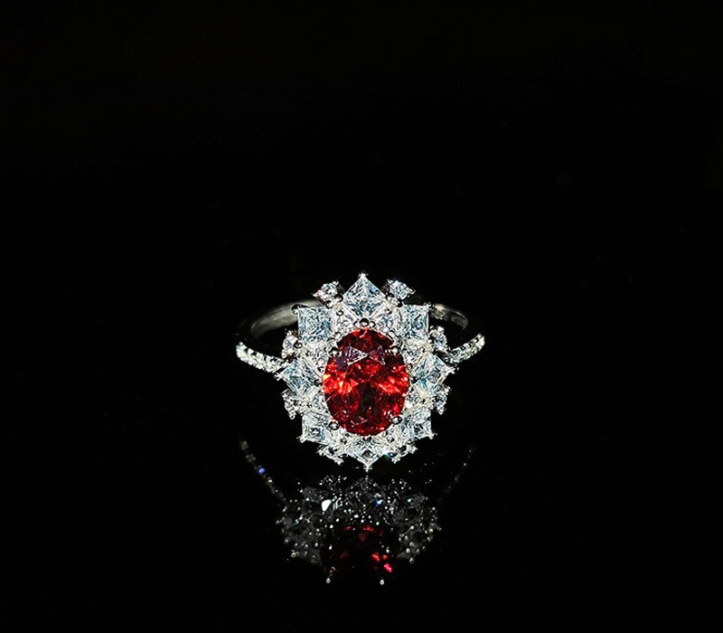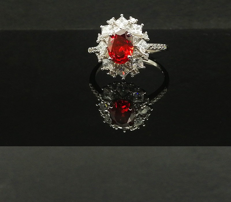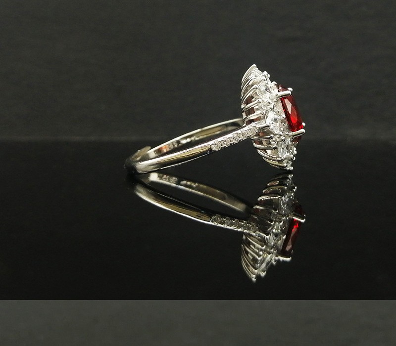 S925 Silver Ring With An Adjustable Opening Featuring A Pigeons Blood Red High-carat Zircon
