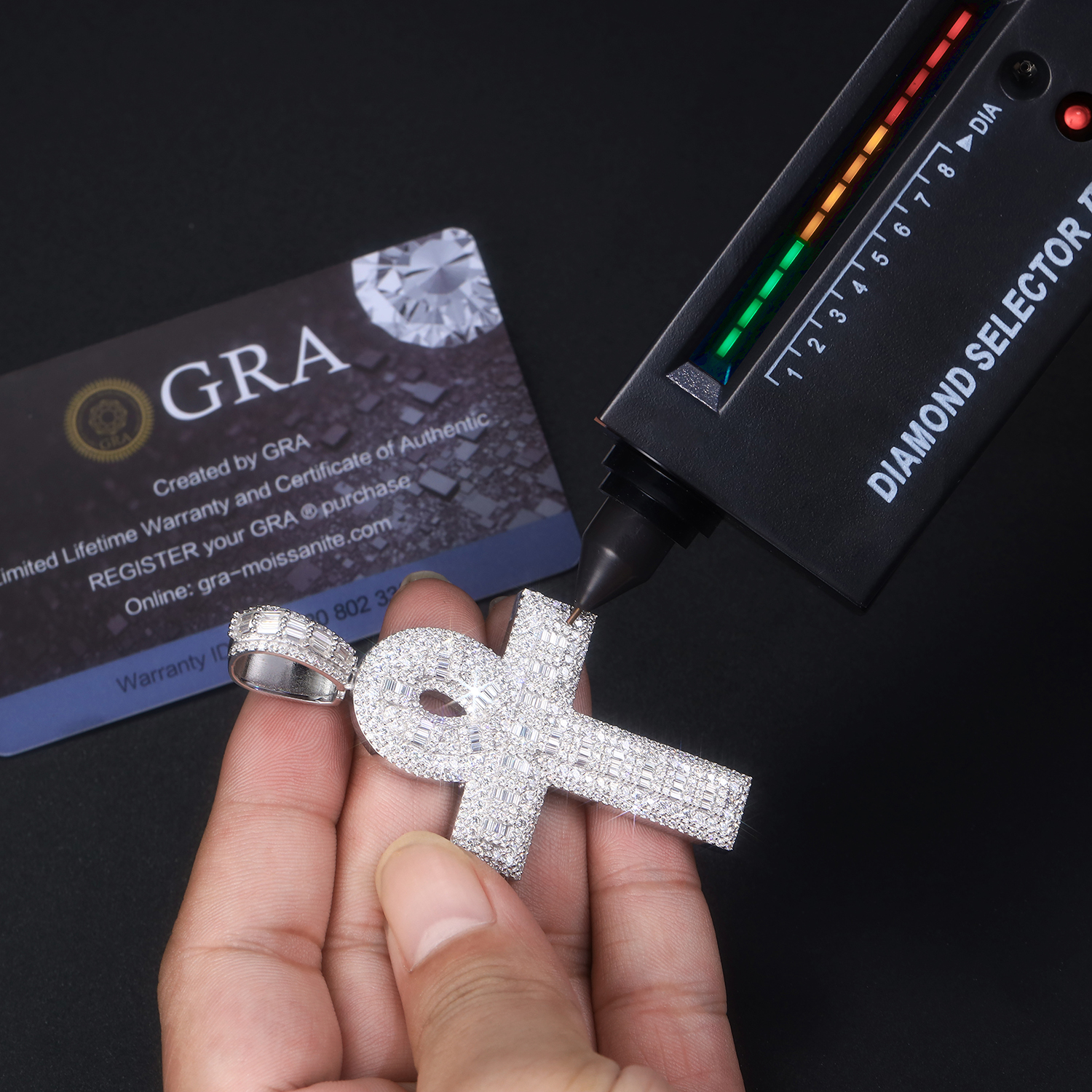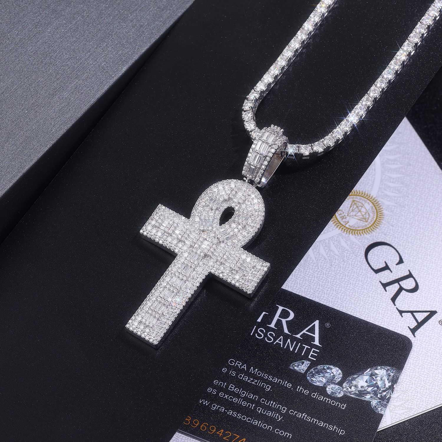 Moissanite size: less than 0.1 carat Metal material: Platinum-plated S925 silver Length:Weight: 19.4 grams Packaging: Gift box packaging Certificate: GRA certificate Customization situation: Packaging can be customized /LOGO can be...