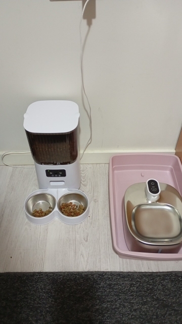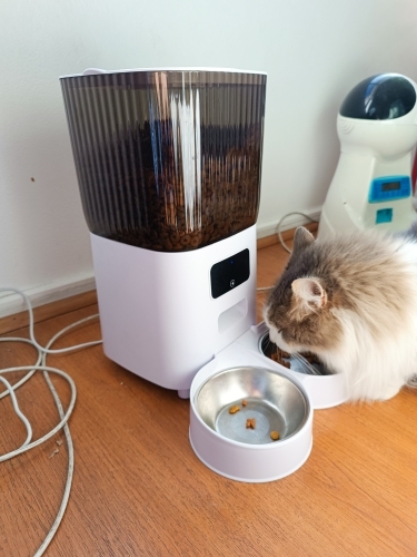 I’ve been using it for a week and I’m delighted. Programming the food is simple; you have to set how many portions of food you want to come out in the hours you program (each portion is approximately 5g). Also, you need to remember not to fill the tank to the top because otherwise the food doesn’t come out well, and that there is a feeder that comes out more than another (but it’s difficult to make each cat eat in one and not in the other, so that’s why it doesn’t pose much of a problem for me).