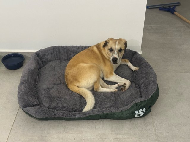 Nice bed, big enough and worm but not very comfy. There are spots with not much fluffy inside so the dog is feeling the floor.